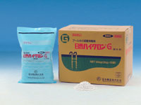 長時間にわたり、少しずつ溶けることで、効果を持続させる薬剤です。 顆粒剤を投入後に、本薬剤を投入することで、約3時間の遊離残留塩素の管理が行えます。
